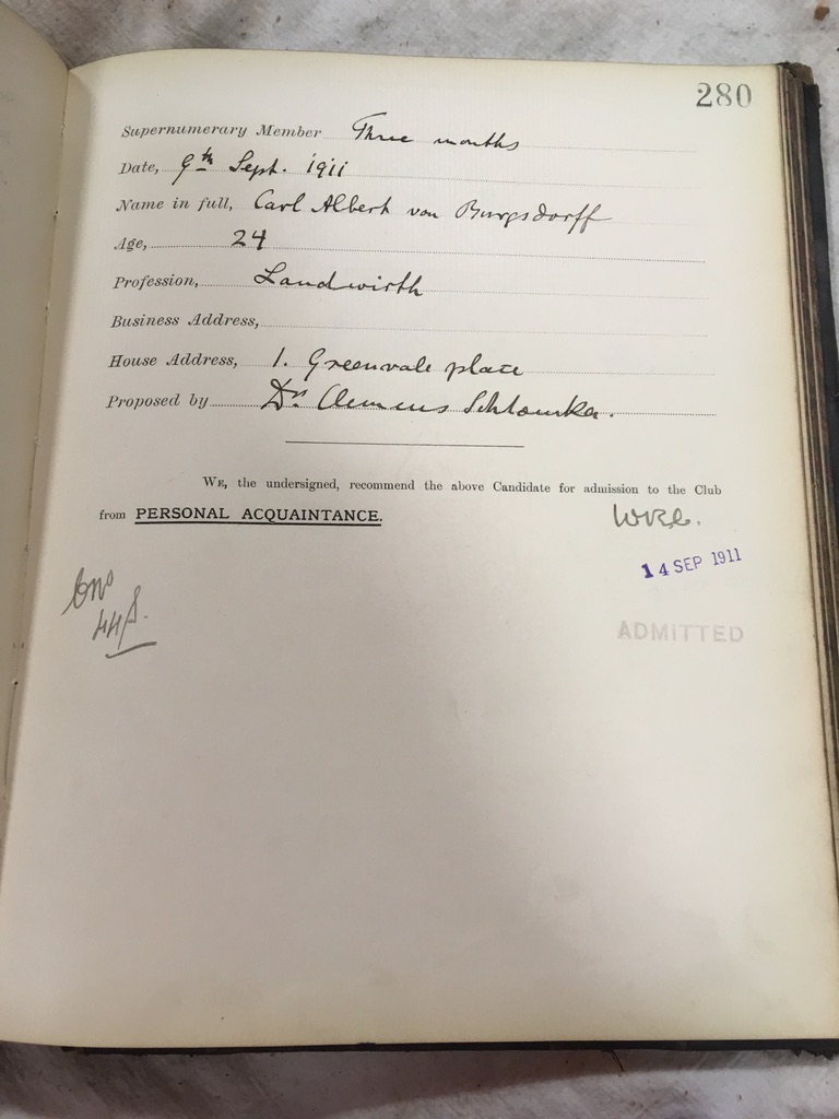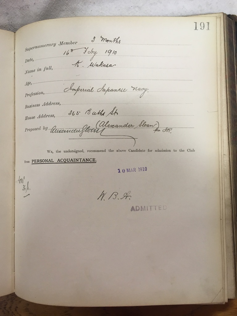 Taking a look at the Arlington Baths Club proposal books from 1910 to 1915 reveals that there were lots of members who came from all over the world, many joining as supernumerary members for three or six months.