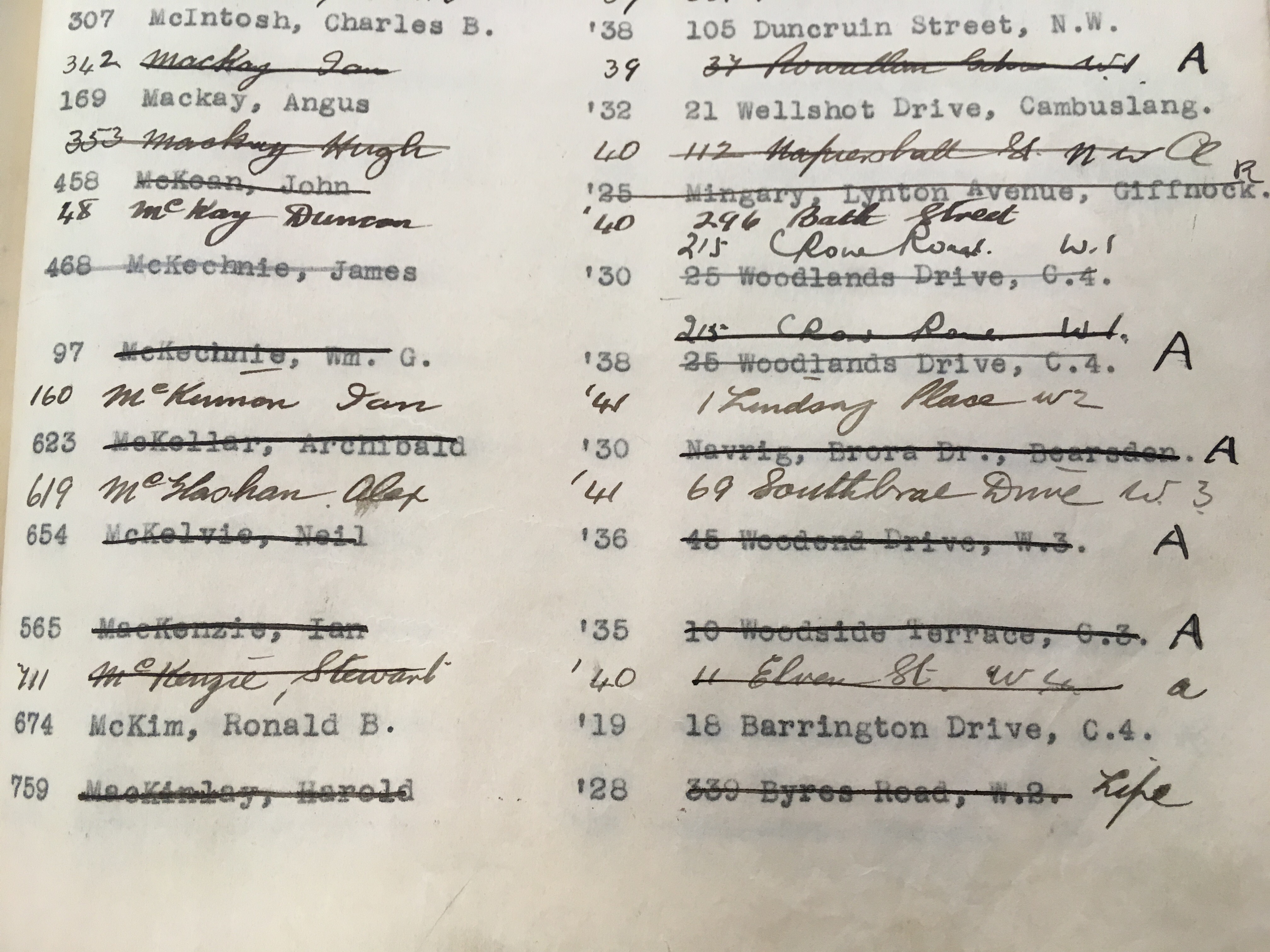 His address – Navrig, Brora Drive, Bearsden – was his parents’ home.