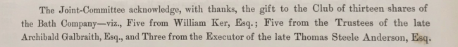 For, in the Arlington Baths Club annual report of May 1906, the Club acknowledged the receipt of three shares from the estate of Thomas Steele Anderson, Esq.