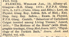 Sadly, Fleming never achieved the lasting recognition enjoyed by some of his contemporaries, such as Joseph Lister, William Gairdner and William Macewen. He was unsuccessful in his application for the Chair of Institutes of Medicine at the University of Aberdeen, and although well-known in Glasgow circles for his work, appears to have been overshadowed by the other great medical men of his time.