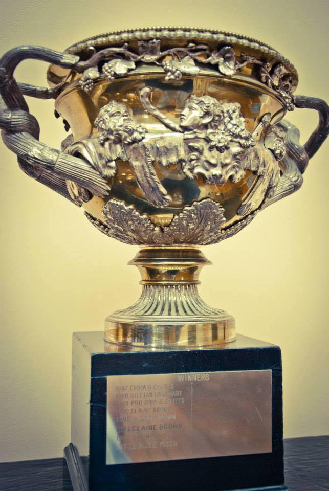 The Challenge Cup is actually a small-scale replica of the Warwick Vase, an ancient Roman marble vase unearthed near the villa of the Emperor Hadrian at Tivoli in 1771. It caused a sensation when first seen and for many years was owned for many years by the aristocratic Warwick family who displayed it in a purpose-built Gothic-style greenhouse!